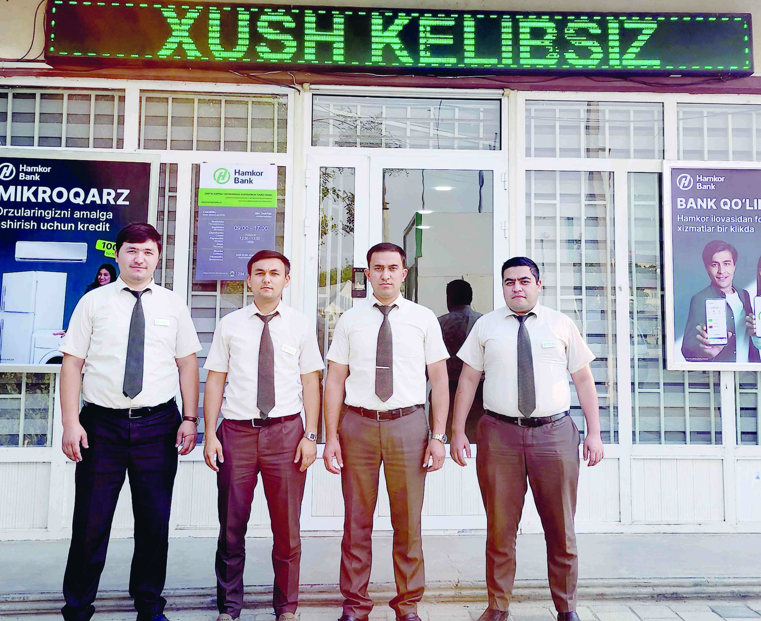 Ҳамкасбларим билимли ёшлар. Саидислом Муталов кассир сифатида қунтли, сабрли йигит. Келажакда банкнинг бошқа йўналишда ҳам ишлаш нияти бор. Суҳроб Садриддинов универсал менежер. Ҳар бир ишни сидқидилдан бажаради. Абдурасул Гавҳаров жисмоний шахсларга кредитлаш менежери сифатида мижозлар билан энг кўп мулоқот қиладиган ходим. Биз бир жамоамиз. Ва мақсадларимиз ҳам бир — юртимизнинг иқтисодий юксалишига ҳамда халқимиз фаровон турмушига ҳисса қўшиш.