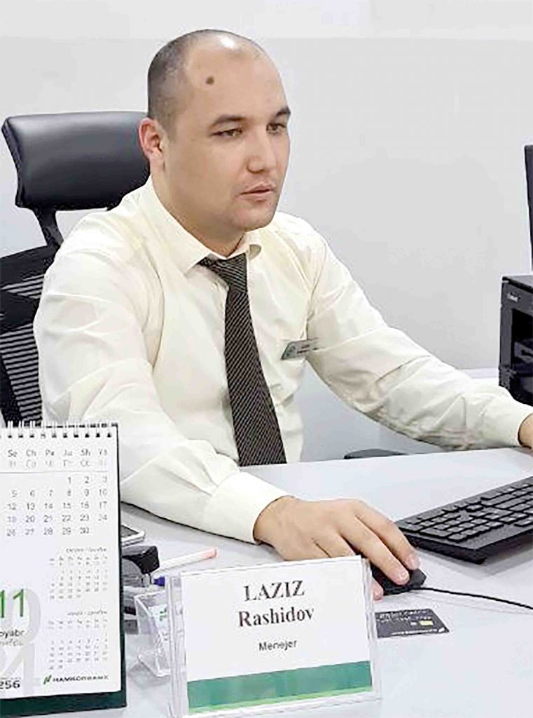 Лазиз РАШИДОВ: — Бизда жисмоний шахслар фойдаланадиган барча банк хизматлари мавжуд. Асосан микроқарз ҳамда автокредит чиқариш билан шуғулланаман. Ўтган ойда энг юқори кўрсаткичга эга бўлган ходим мен бўлдим.