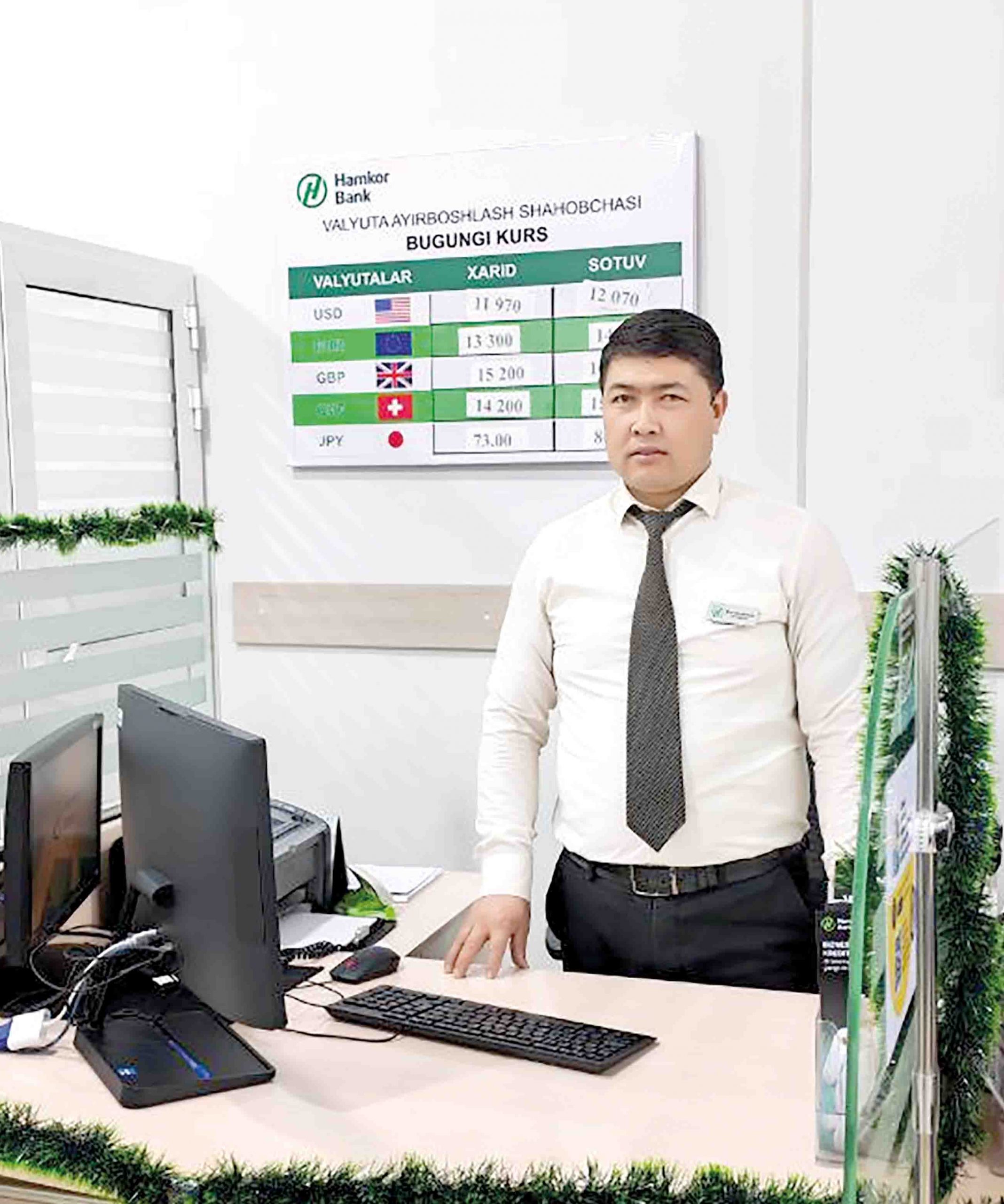 2021 йилнинг илк ойидан БХО бошлиғи лавозимида ишлаб келяпман. Жамоамиз кенгайди, хизматлар, кўрсаткич­лар ҳам шунга қараб ўсди. Йилдан-йилга юқори муваффақиятларга эришаётганимиз замирида жамоанинг якдиллик билан фаолият олиб бораётгани ётибди. Ҳар бир ҳамкасбим изланяпти, ҳаракат қиляпти. Билимга чанқоқ, изланувчан ва зукко ёшларни хизмат кўрсатиш вақтида ҳар бирини кузатаман, мижозларга муносабатлари, уларни тинглаб хизмат кўрсатиш сифатини таҳлил қиламан.  Вазифаларига сидқидилдан киришгани қувонтиради. Биз ана шундай масъулият ва тартиб билан янги мижозлар келишига эришяпмиз, юқори даромад манбаини ярата оляпмиз.
